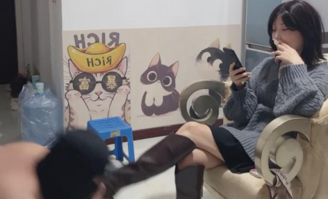 情侣奴被高贵辣妹当清理鞋底汗脚工具使用